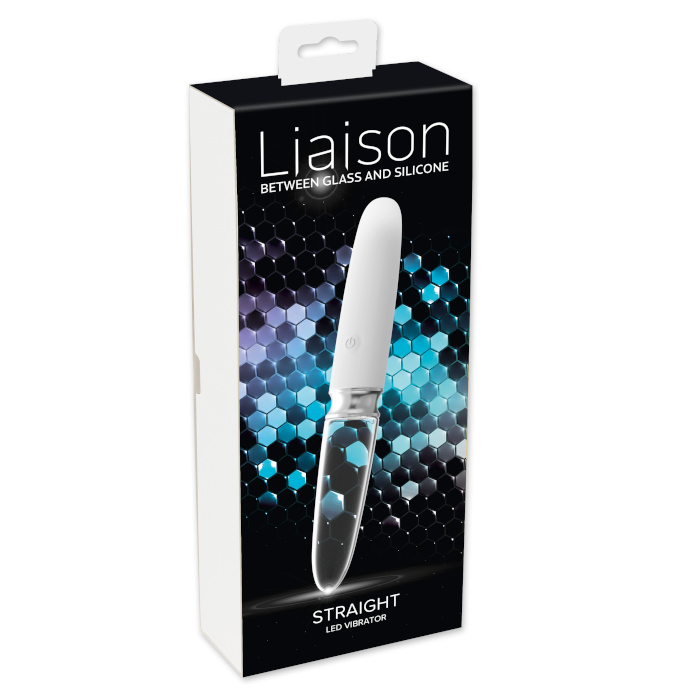 Elegante rechte LED vibrator van Liaison die alle voordelen van een siliconen en glazen vibrator combineert. Het rechte, handige ontwerp kan aan beide kanten gebruikt worden en met sensuele Ledverlichting in de top.